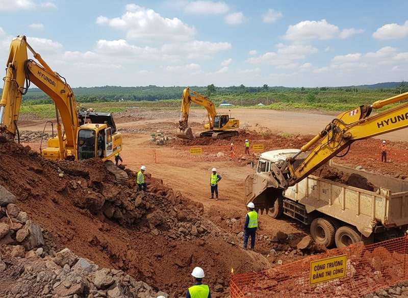 Nhân sự thi công san lấp mặt bằng cần có kinh nghiệm thực tế và hiểu rõ điều kiện địa chất địa phương. Đội ngũ vận hành máy móc phải được đào tạo bài bản, tuân thủ nghiêm ngặt quy trình an toàn lao động trong suốt quá trình thi công. Điều này không chỉ giúp hạn chế tai nạn mà còn đảm bảo tiến độ và chất lượng công trình san lấp mặt bằng Nhơn Trạch Long Thành.