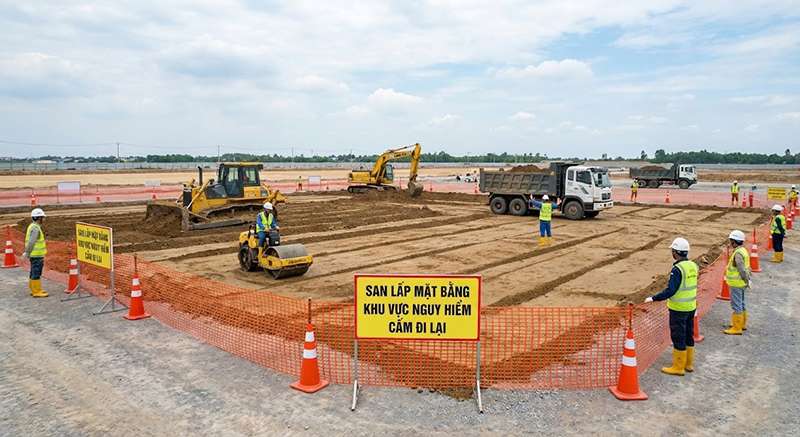 Hệ thống máy móc phù hợp giúp xử lý nhanh khối lượng đất lớn, đảm bảo mặt bằng đạt cao độ chính xác theo thiết kế. Đặc biệt với các dự án diện tích rộng, việc bố trí thiết bị hợp lý sẽ giúp rút ngắn thời gian thi công và tối ưu chi phí.
